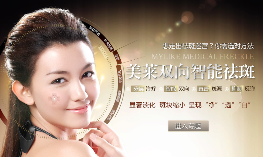 廣州美萊雙向智能去斑,針對位于不同深淺層次的黑色素自動識別,定向分層去斑,選擇性波長將激光能量傳遞到指定的皮膚深度,定向分層擊潰斑塊,徹底淡化色素,同時跨越表皮和真皮層,穿透力更深,并保證色斑治療的穩(wěn)定性,降低色斑反彈風(fēng)險,肌膚亮采新生,通透白皙!