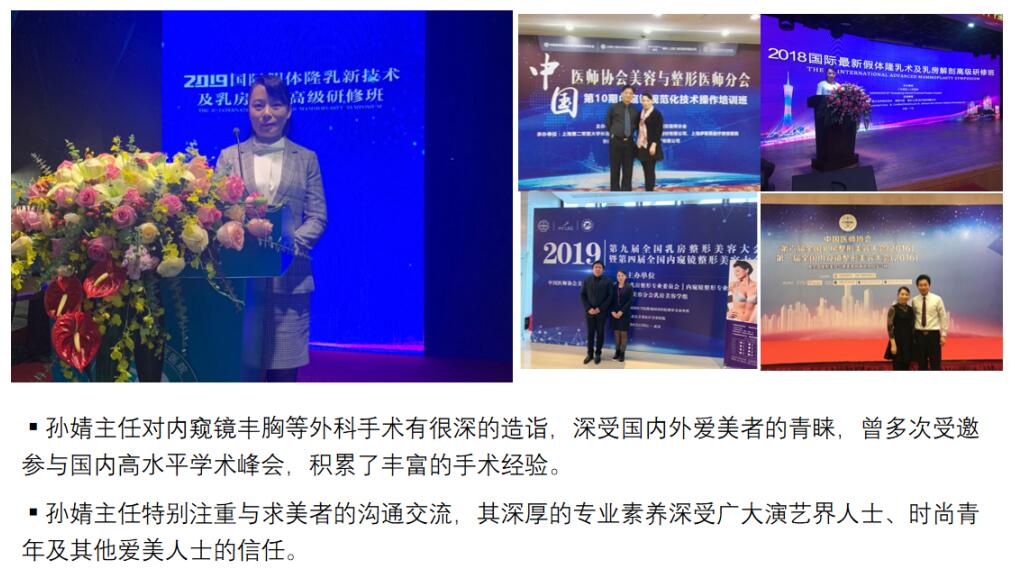 孫婧,國內(nèi)內(nèi)窺鏡雙平面技術(shù)先鋒,深V動感豐胸資深專家。早年在南方醫(yī)院整形外科進(jìn)修,專業(yè)從事胸部整形15年,親身經(jīng)歷了國內(nèi)隆胸技術(shù)數(shù)次變革。她敏銳地跟隨每次技術(shù)潮流的發(fā)展步伐,第一時間投身于先進(jìn)技術(shù)的學(xué)習(xí)與研究,積累了豐富的手術(shù)經(jīng)驗,并多次被邀請到國內(nèi)外隆胸實操比賽當(dāng)中進(jìn)行技術(shù)展示。孫婧主任在手術(shù)當(dāng)中展現(xiàn)出的嫻熟與專業(yè)為她贏得了業(yè)內(nèi)外的一致好評,上萬例成功的手術(shù)案例更是對她技術(shù)水平的最佳鑒證。