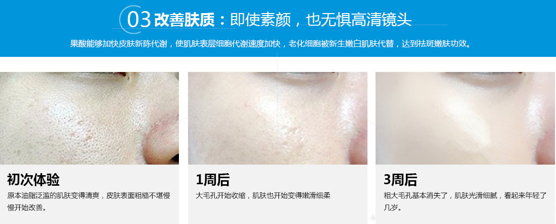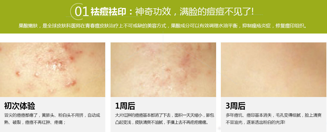 直接咨詢客服肌膚問題果酸,是科學(xué)家從多種水果和酸奶中提取出來的精純有機酸,結(jié)合時下尖端的科學(xué)皮膚美容技術(shù),形成的果酸嫩膚美容項目。借助果酸超強的滲透力,可以迅速疏通毛孔,促進肌表老廢角質(zhì)脫落,并能加速細(xì)胞的新陳代謝,平衡油脂分泌,縮短細(xì)胞老化周期,迅速改善、修復(fù)皮膚。