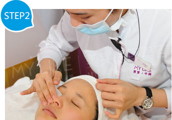 做果酸前,需要使用中性潔面乳將臉上的妝容、防曬霜等卸干凈。瞧,顧客小曼的嫩膚之旅開始了…