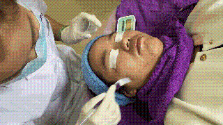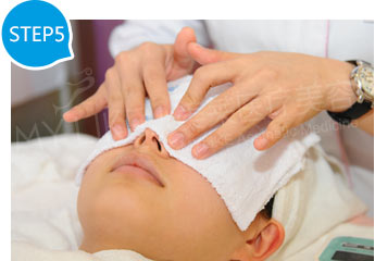 醫(yī)生使用冰的4*4紗布覆蓋在治療區(qū)域,這一步可有效減輕果酸過后發(fā)紅、緊繃和敏感。