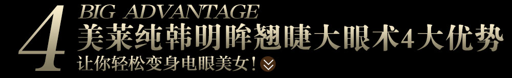 美萊純韓明眸翹睫大眼術(shù),采用精細(xì)化技藝,是根據(jù)顧客眼部現(xiàn)狀,在開雙眼皮的基礎(chǔ)上,開內(nèi)/外眼角,矯正上瞼下垂,同步解決多種眼部形態(tài)不美問題的美眼手術(shù)。