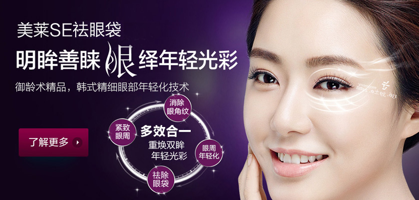 美萊純韓祛眼袋,針對個人眼袋情況,采用韓式精細祛眼袋技術,將眼袋脂肪釋放并消除眼周肌膚松弛問題,同時達到祛除眼袋、消除眼角紋、緊致眼周肌膚等等多種功效的眼部年輕術,重煥雙眸年輕光彩。